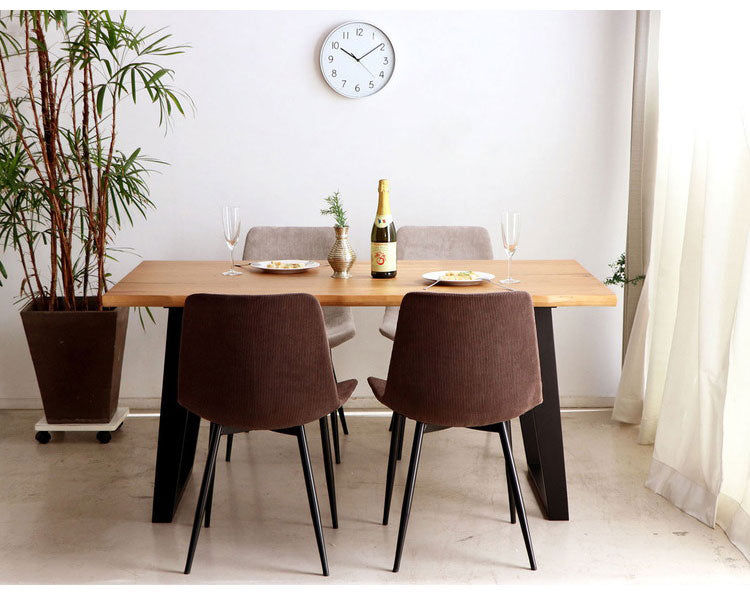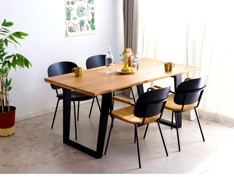 まるで本物の一枚板のような雰囲気の天板で構成されたダイニングテーブル。