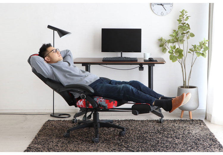 ゲームだけでなくオフィスでも使用できるチェアでリクライニング&フットレストの機能付き!