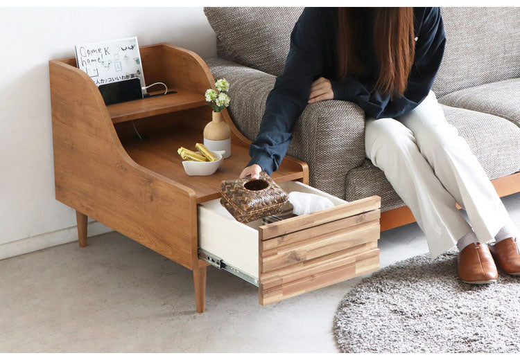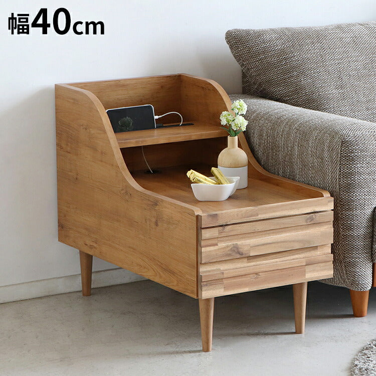 アルグ サイドテーブル 国産 幅40.2cm ナイトテーブル 引き出し収納 タブレットフォルダー コード穴 タブレット置き おしゃれ かわいい ミニテーブル ベッド 寝室(代引不可)