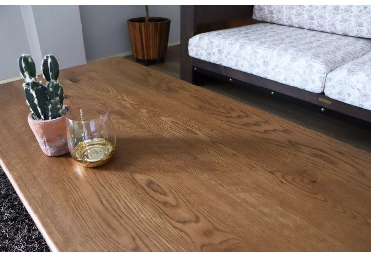 天板のオーク無垢材が最も活きる最低限の設えが、空間に馴染みつつ、高級感とセンスを感じさせるアイテムです。