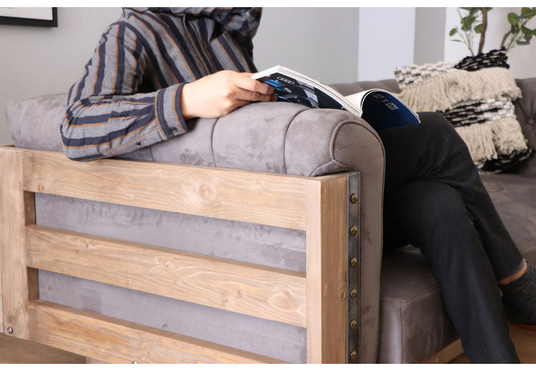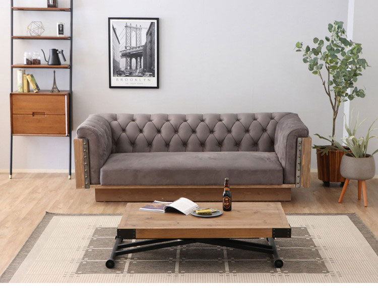 イギリスの伝統的なソファ“チェスターフィールド” を、アップタウン人気シリーズPULLEYの柔らかい印象の木目がキレイなパイン材でデザインしたアンティークな魅力のあるソファ。