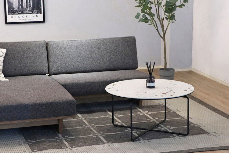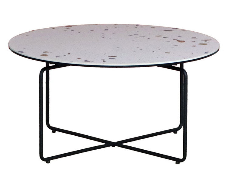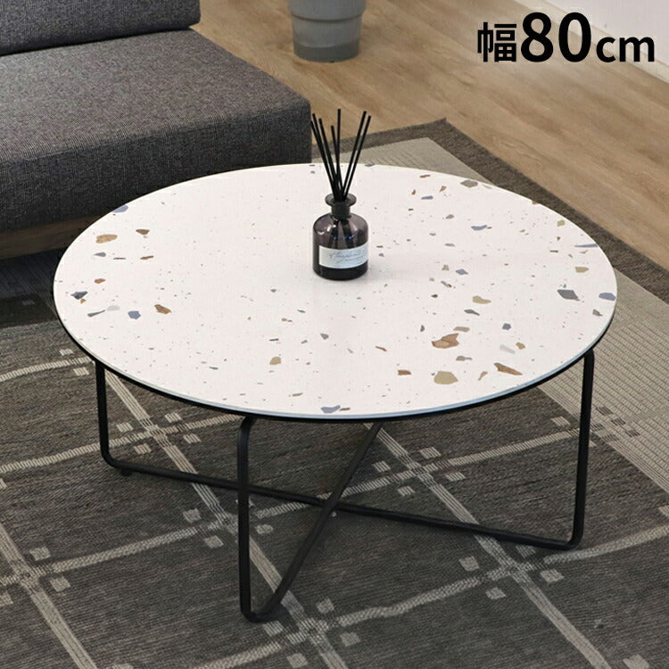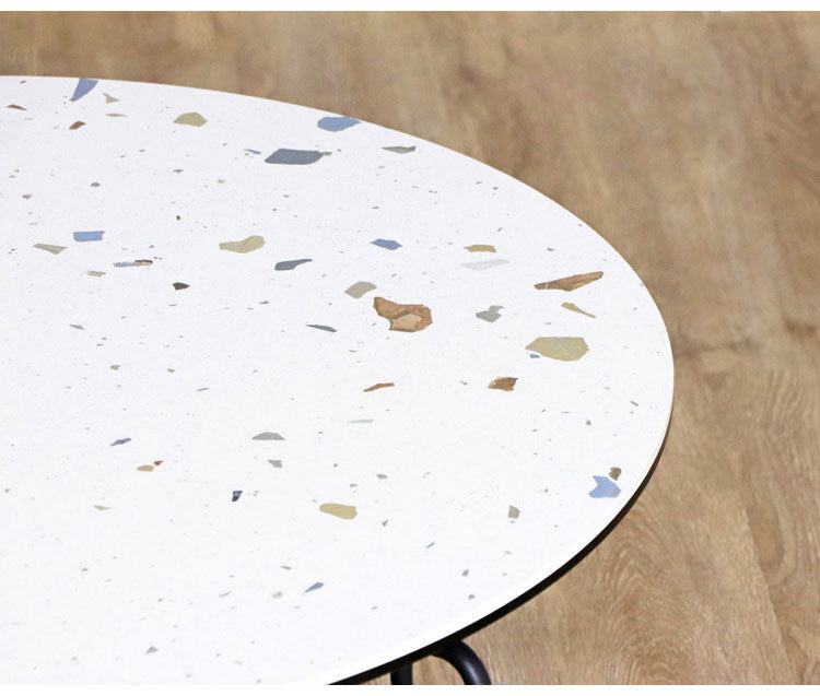 天板にテラゾー柄を採用したミッドセンチュリーからアールデコテイストまで幅広いインテリアテイストにマッチするセラミック円形テーブル。
