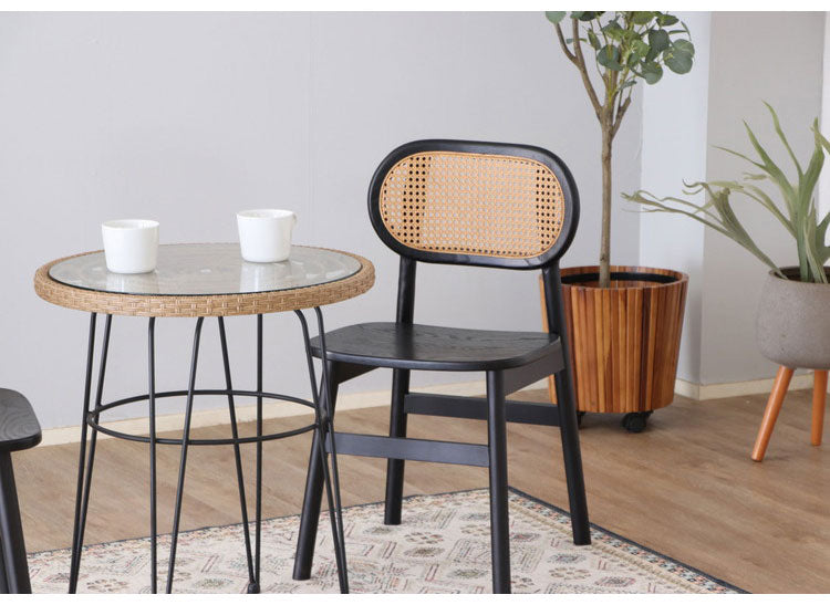 温かみのあるラタンと包み込むような深みのあるブラウンの木製フレームが渋みのある粋なナチュラルテイストの雰囲気を醸し出します。