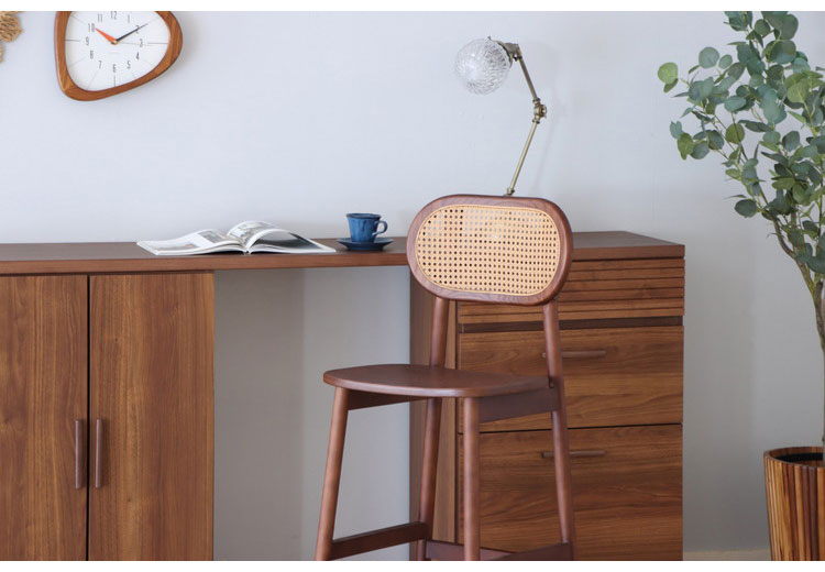 温かみのあるラタンと包み込むような深みのブラウンの木フレームが、渋みのある粋なナチュラルテイストの雰囲気を醸し出します。