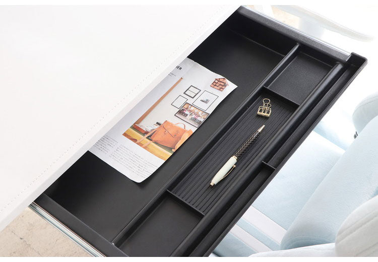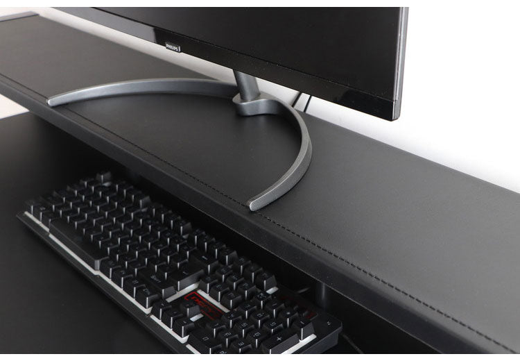 高級感のあるレザー調天板と、スタイリッシュな形状のスチール脚で、他にないデザインデスクとなっております。