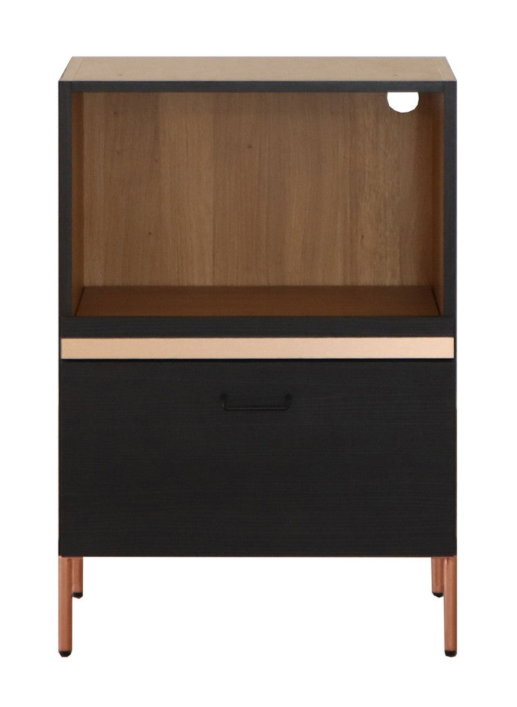 コッパーカラーと黒の木目のコントラストがクールでオシャレなアイテムです。
