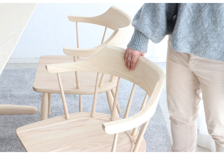 体を包み込むようなフォルムと広い座面で木椅子の質感を味わいつつ、ゆったりと座ることができます。
