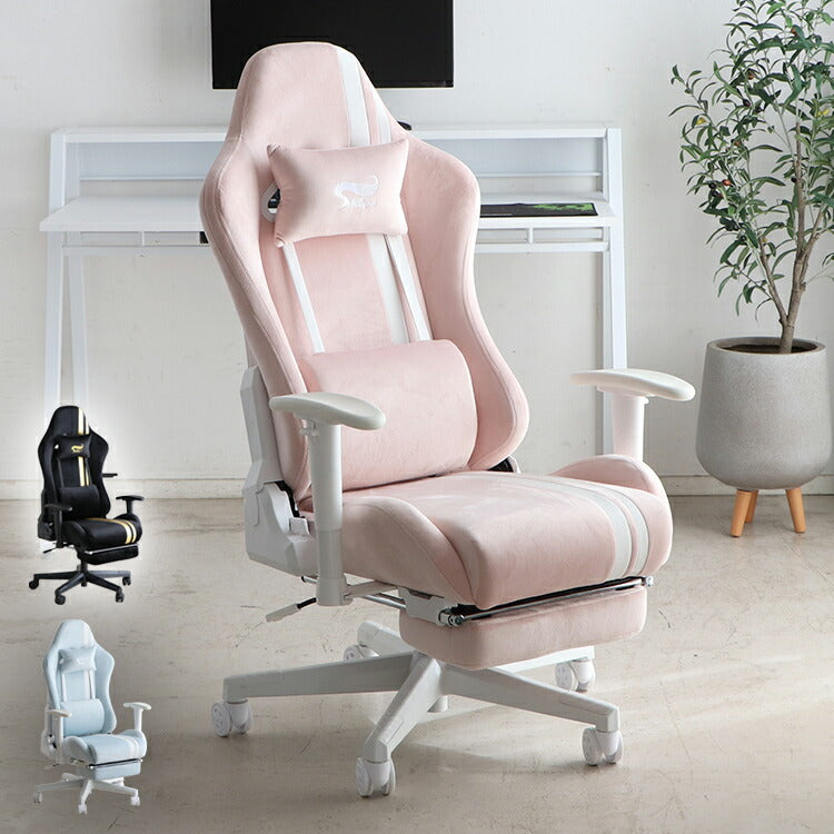 ゲーミングチェア 白 ホワイト ピンク ブルー 可愛い かわいい デザインチェア 高さ調節 肘掛け 椅子 デスクチェア おしゃれ(代引不可)