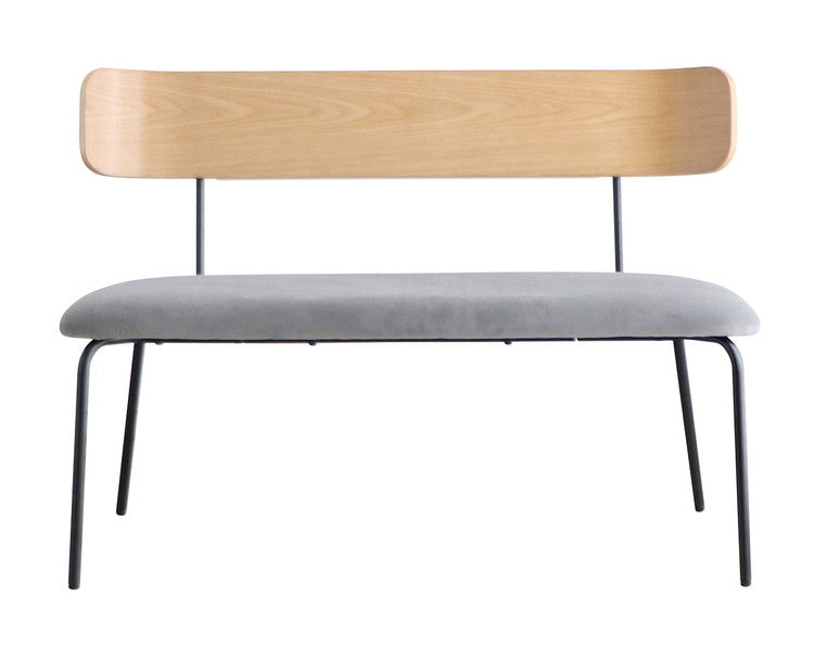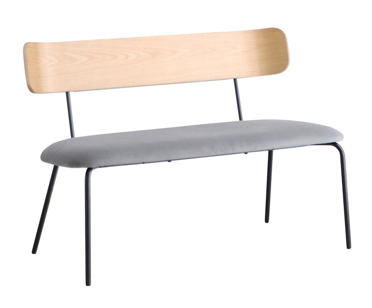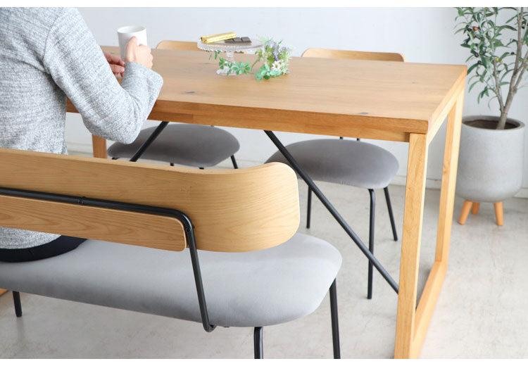 ハタナベンチ ダイニングベンチ 背もたれ付き ダイニング ベンチ 北欧 2人掛け 3人掛け 椅子 おしゃれ 肘なし 木製 オーク 突板 背もたれ 食卓椅子 スチール脚(代引不可)