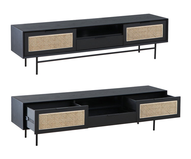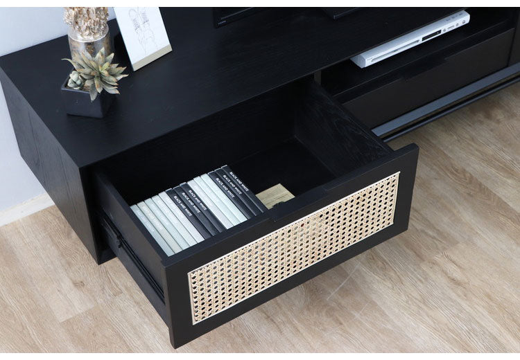耐久性のある人工ラタンと美しい木目が上質さ溢れるローボード。