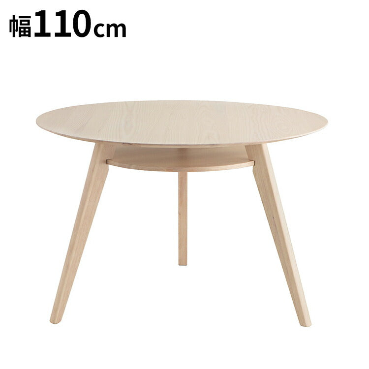 シロカ ダイニングテーブル 幅110cm 丸テーブル 北欧 無垢 白 3人 3本脚 木製 収納 棚付き 丸型 韓国風 おしゃれ かわいい テーブル単品 円形 テーブル 円型(代引不可)