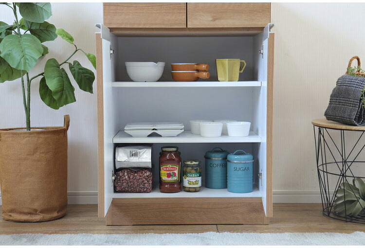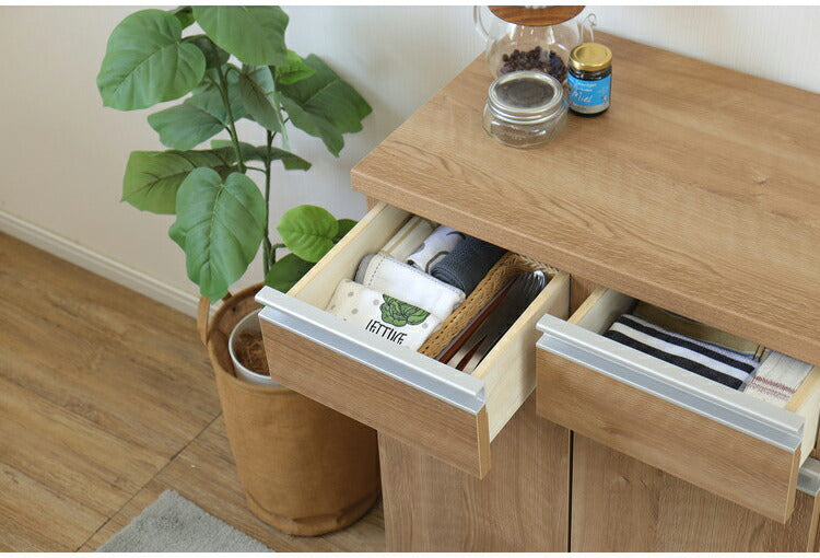 シンプルで癖のないデザインは、どんな空間にも溶け込みその他を邪魔しないデザインです。最大容量を確保した収納が実用性抜群のカウンターです。キッチンやダイニングだけでなく、クローゼットや寝室など様々な場所に配置できます。