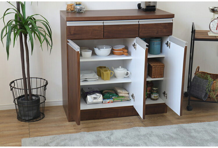 カウンター収納 日本製 幅90cm 大容量 引き出し付き 扉収納 キッチンカウンター リビングボード キャビネット 国産 おしゃれ シンプル リビング キッチン ダイニング クローゼット 寝室(代引不可)