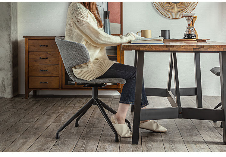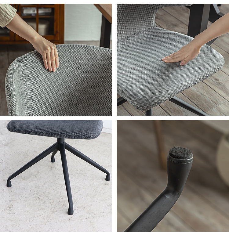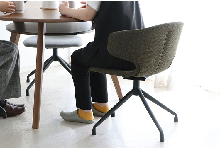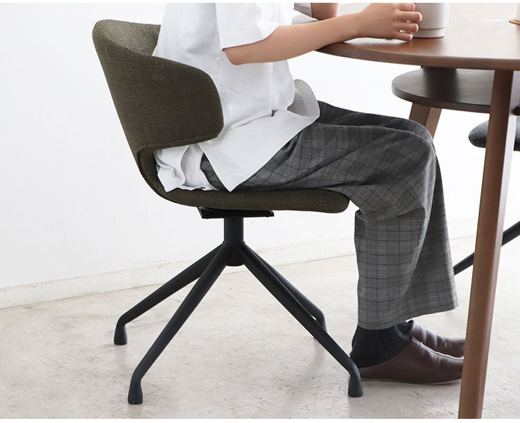 ラウンドチェア 座面高44cm 回転チェア 肘掛け付き スチール脚 ファブリック ステッチ デスクチェア オフィスチェア 包み込む 座り心地 座面 おしゃれ リビング(代引不可)