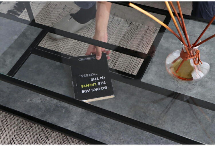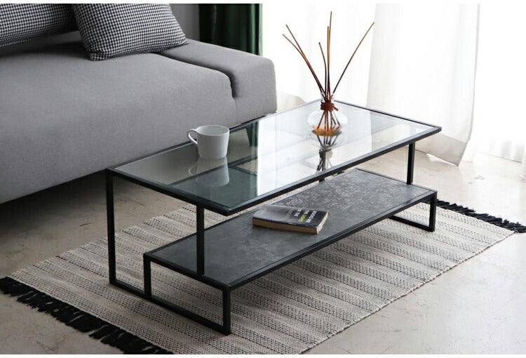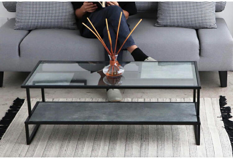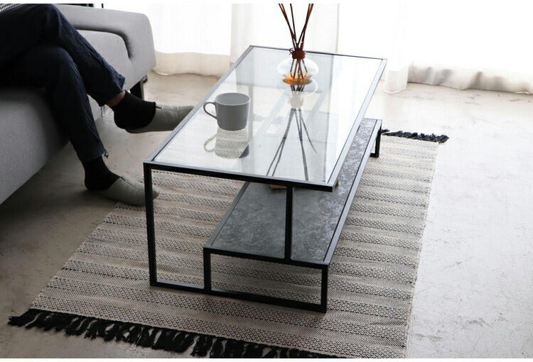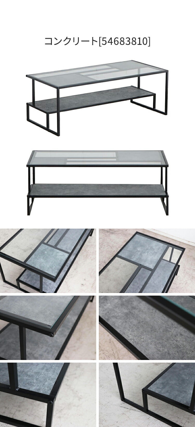 センターテーブル 105×50cm ガラステーブル 棚付き リバーシブル 脚部 ローテーブル 棚板 収納 リビング ワンルーム おしゃれ スタイリッシュ モダン デザイナーズマンション オブジェ テーブル(代引不可)