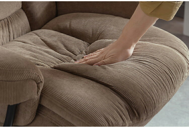 高級感とこなれ感のあるデザイン性が人気のコーデュロイ張地を採用した、まるで寝具に包まれるような座り心地と寝心地を実現するパーソナルチェア。長時間、快適な座り心地を提供します。