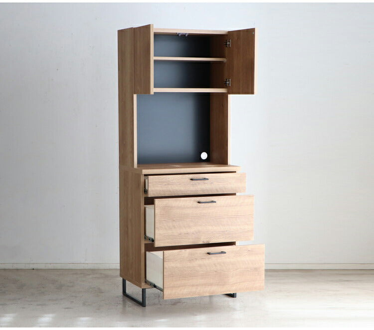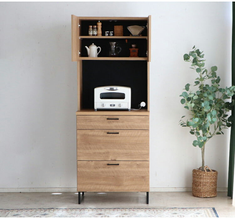 キッチンボード 食器棚 国産 幅70cm ラック レンジ台 オープン収納 家電収納 引き出し付き 可動棚 扉付き コード穴 スチール脚 木目調 北欧風 キッチン収納 日本製 リビング キッチン(代引不可)