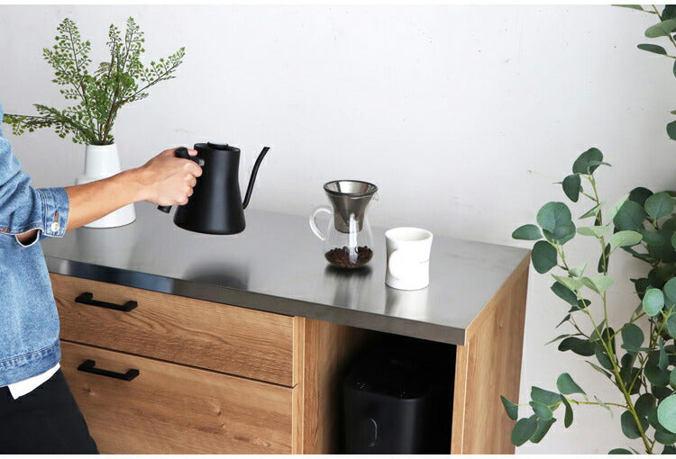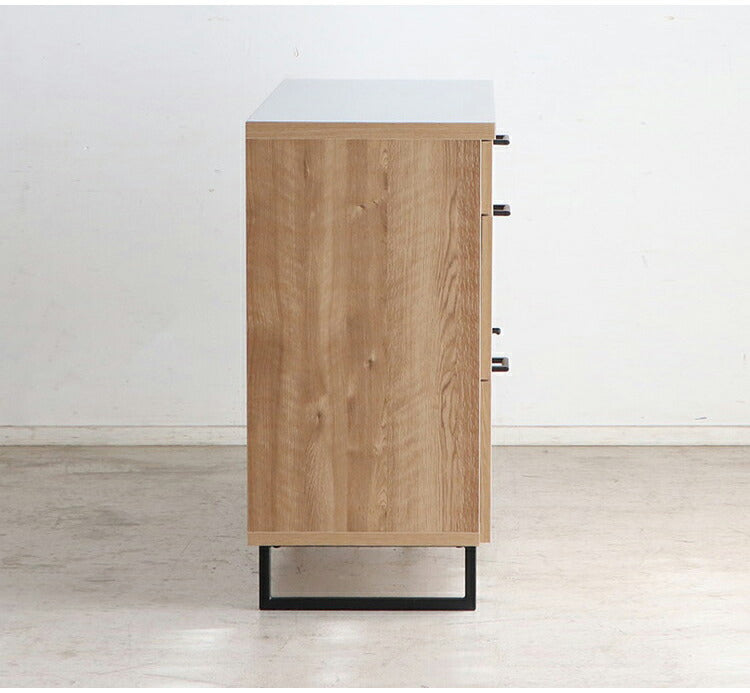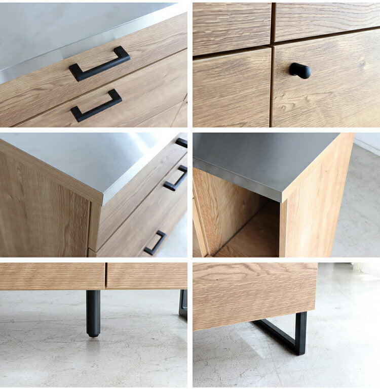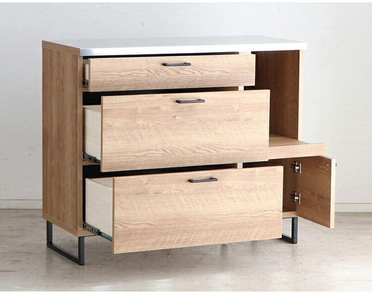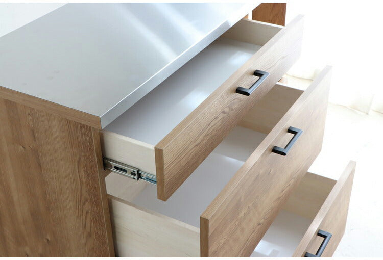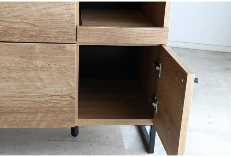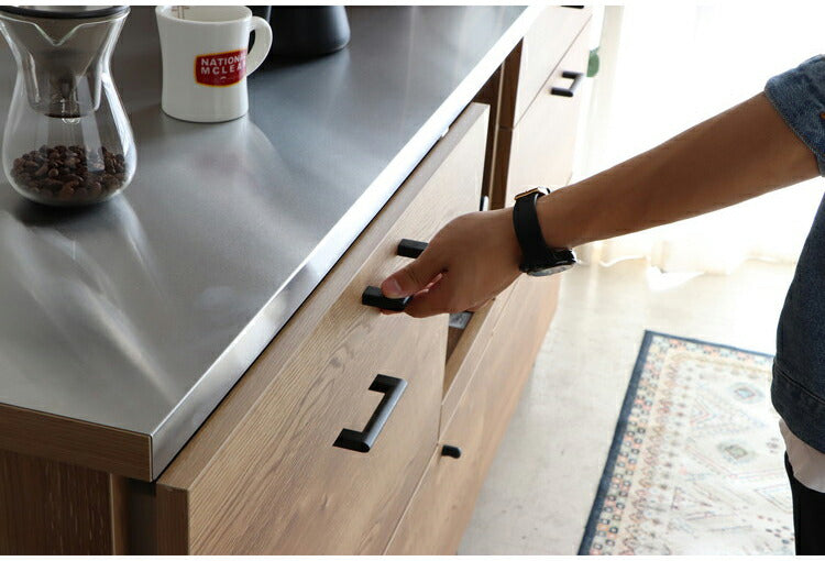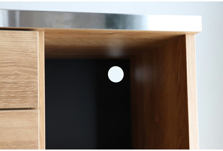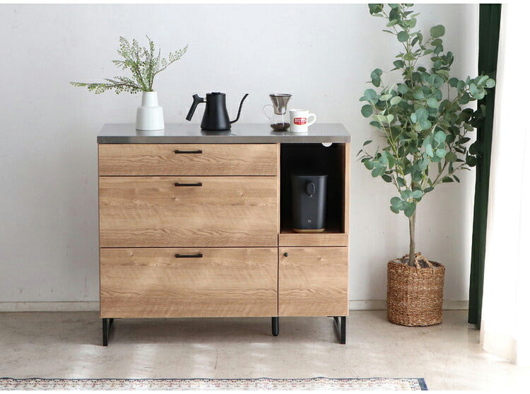 キッチンカウンター 国産 完成品 幅約105cm 食器棚 オープン収納 スライド棚 引き出し付き 扉付き コード穴 スチール脚 木目調 北欧風 家電収納 キッチン収納 日本製 リビング キッチン(代引不可)