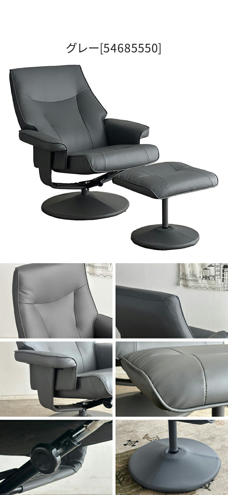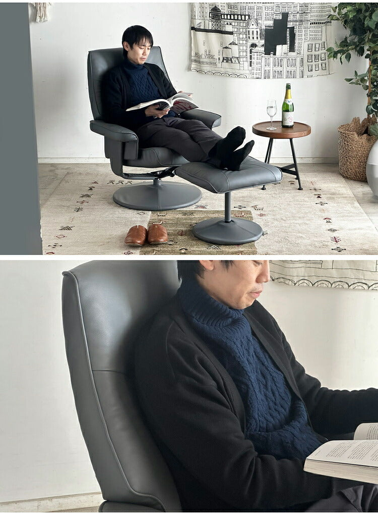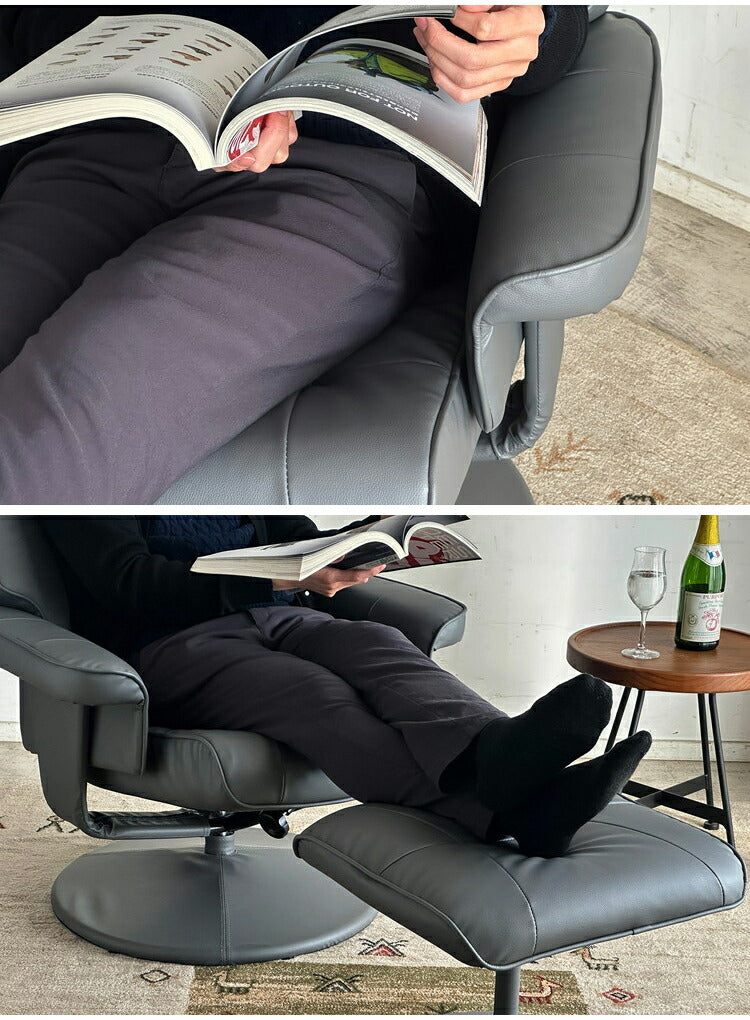 パーソナルチェア オットマン付き リクライニングチェア PVC ウレタンフォーム リラックスチェア おしゃれ リビング 書斎 寝室 一人掛けソファ 椅子 チェア(代引不可)