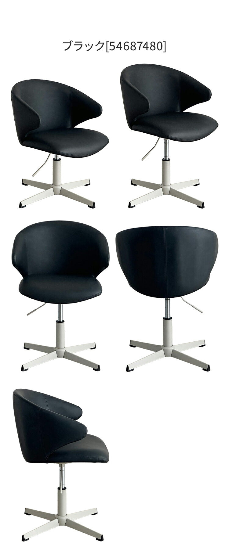 ラウンドチェア 回転チェア 昇降式 座面高38~48cm 十字脚 スチール脚 合成皮革 耐荷重80kg デスクチェア ワーキングチェア ダイニングチェア シンプル リビング ダイニング 回転式 椅子 チェア(代引不可)