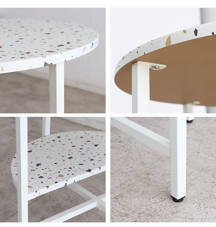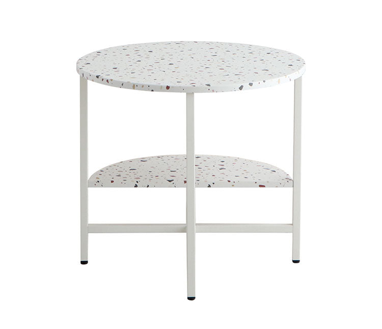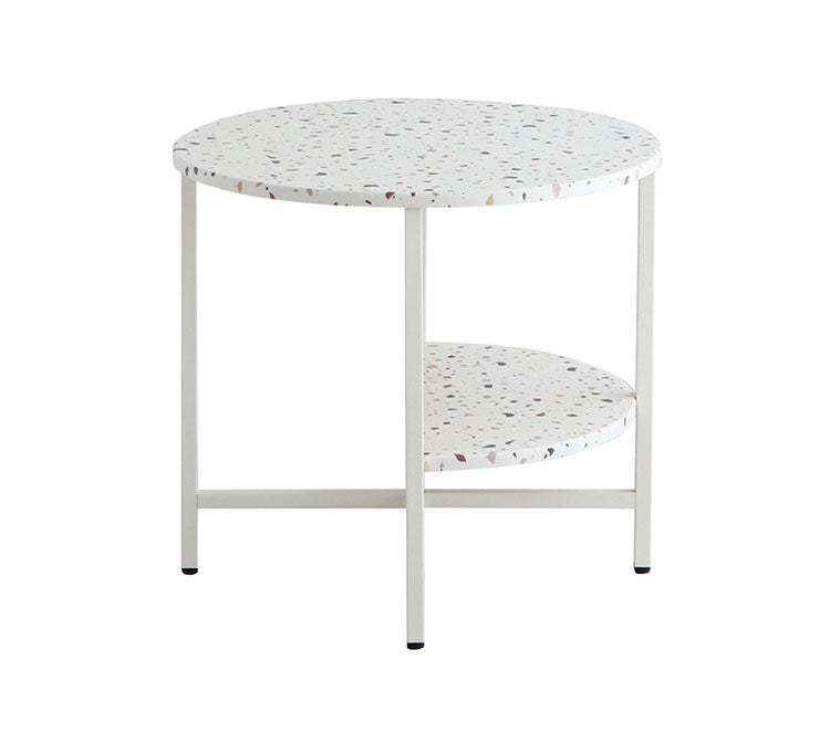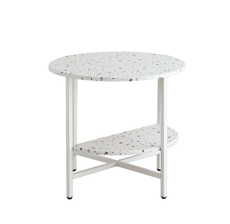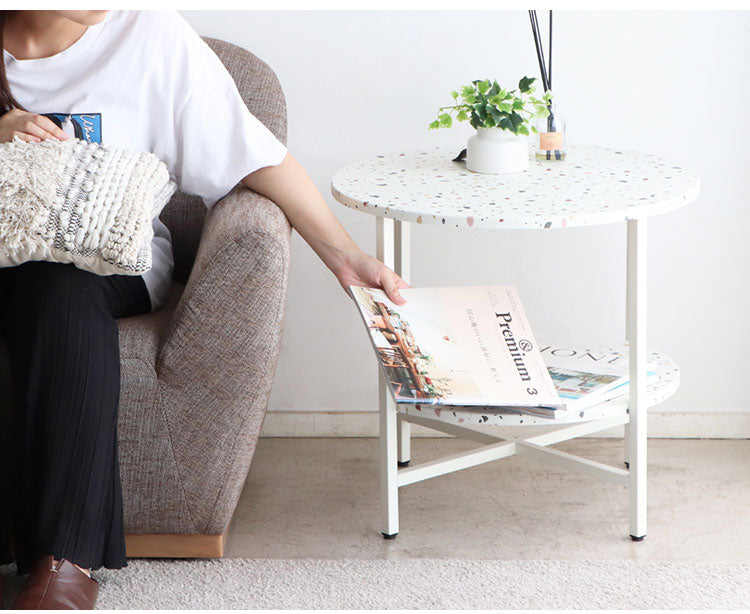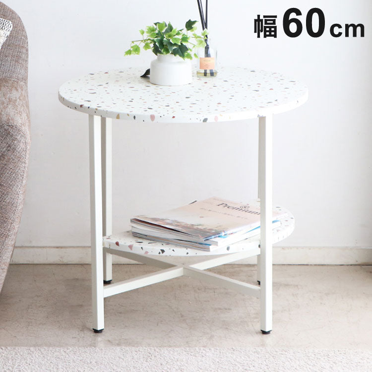 サイドテーブル 幅60cm 円形テーブル 棚付き テラゾー柄 丸テーブル ソファサイド ベッドサイド テーブル おしゃれ 韓国インテリア 韓国 北欧 一人暮らし 新生活 大人(代引不可)