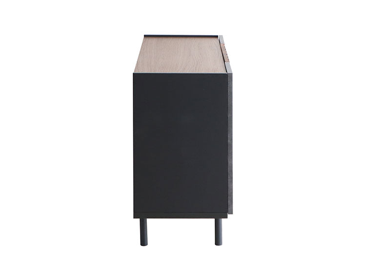 アカシア材の凹凸やコンクリ調の前板のリアルな質感が魅力のキャビネット。