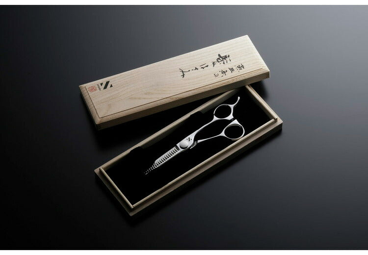 燕三条の髪はさみ シゲル工業 美容師のミニスキばさみ 15cm 桐箱入り 家庭用 セルフカット 本格仕様 スキはさみ スキ鋏 散髪はさみ 子ども ヘアカット 日本製 国産 プレゼント ギフト(代引不可)