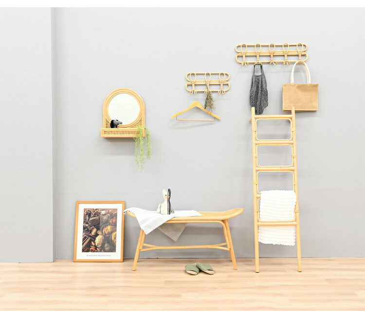 ラタン ハンガー ウォールハンガー ハンガー掛け おしゃれ 壁掛け 壁面収納 木製 韓国 インテリア リビング ダイニング 北欧 かわいい シンプル コンパクト 洋服 かばん コート(代引不可)