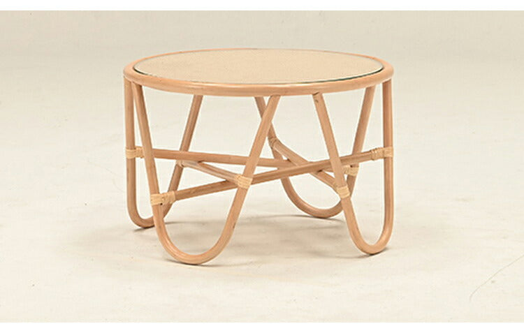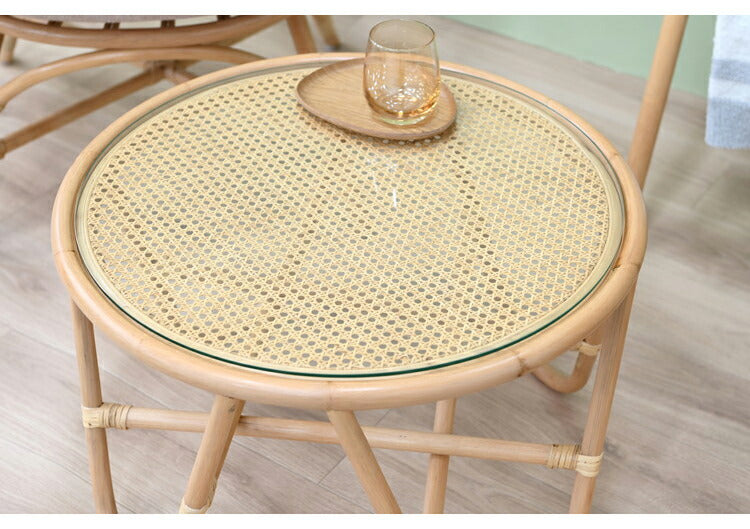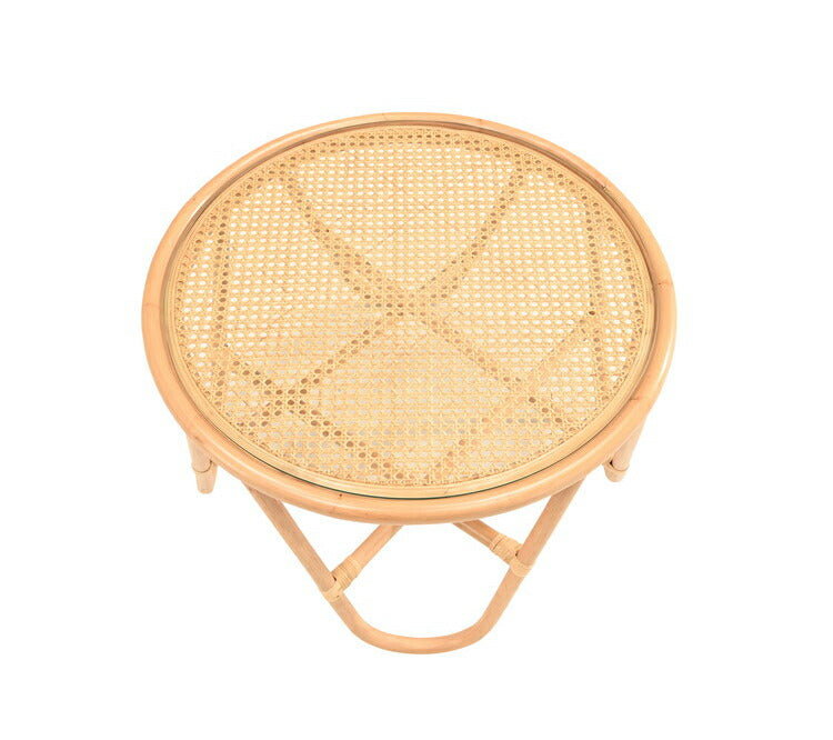 ラタンテーブル 円形 直径50cm 木製 ガラス おしゃれ センターテーブル ローテーブル 韓国 インテリア 北欧 シンプル リビング ダイニング ラウンドテーブル 丸型 ナチュラル(代引不可)