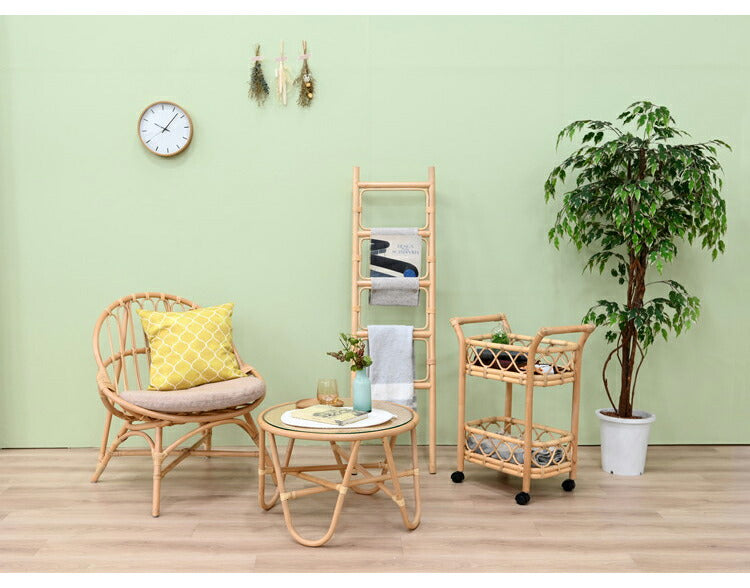 籐素材ですので軽量なのも特徴でレイアウトを変える際や、お掃除も簡単にすることが出来ます。