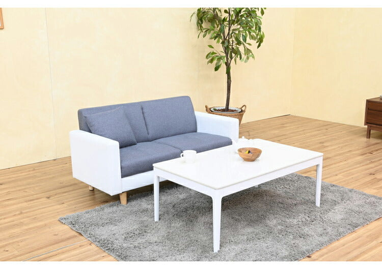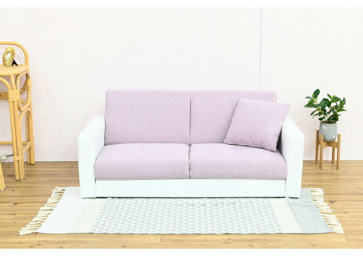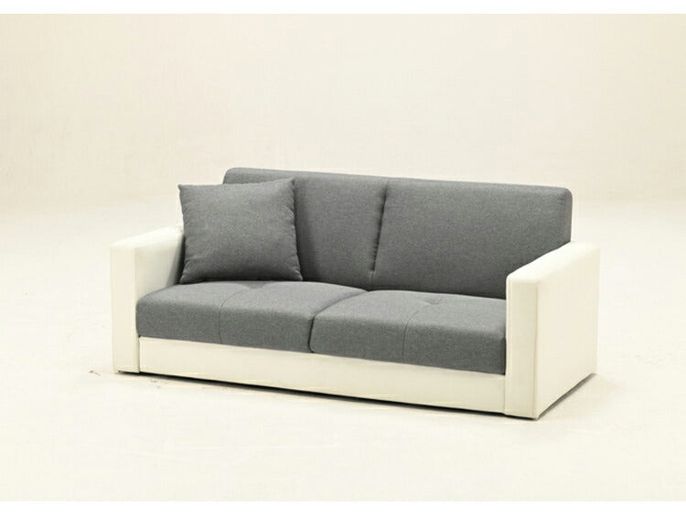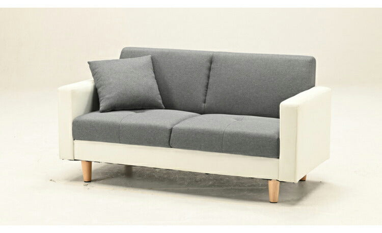 ホワイトのPVCとカラーファブリックの2トーンカラーのカジュアルソファ。