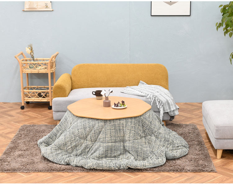 こたつ 幅80cm 8角形 ナチュラル 木目調 おしゃれ 北欧 石英管ファンヒーター 手元コントローラー式 コンパクト シンプル こたつテーブル こたつ台 コタツ 炬燵 丸み かわいい(代引不可)