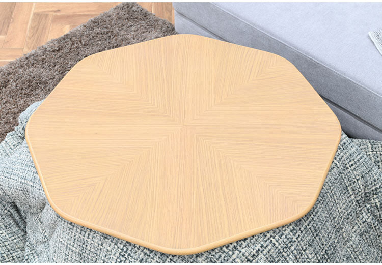 8角形の天板デザインに中央から放射線状にオーク突板が施されています。