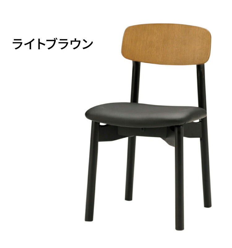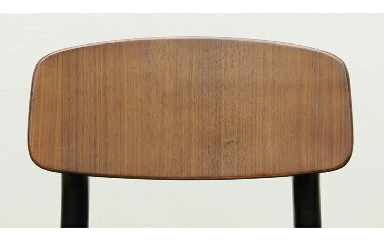 背が丸み帯びた柔らかい印象を与えつつ、座面と脚のブラックで引き締まった印象を与えます。