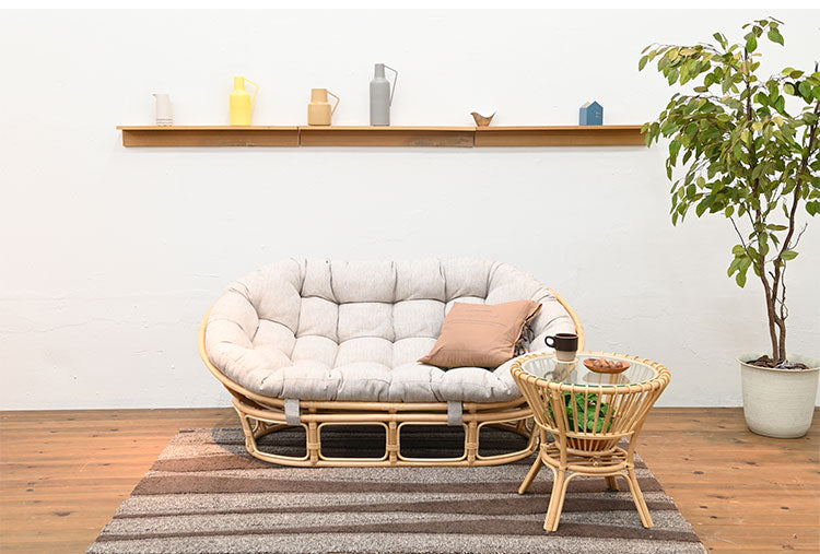 ラタンチェア 2人掛け 幅160cm ラタンソファ 完成品 二人用 2P チェア ソファ付き 椅子 いす おしゃれラタン 籐 木製 アジアン モダン ナチュラル 韓国インテリア(代引不可)