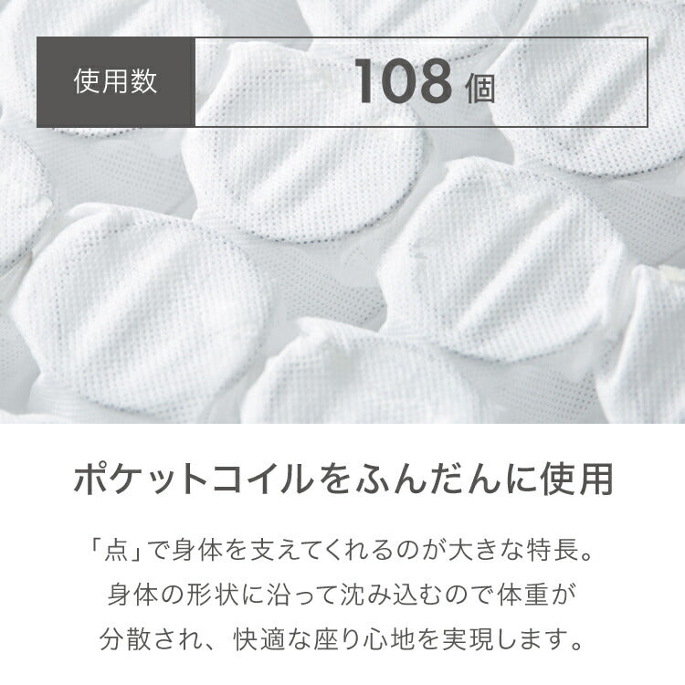 リビングソファで使用している規格のポケットコイルを採用していますのでクッション性抜群です。
