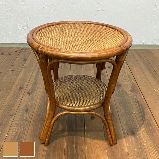 光製作所 ラタン 手編み テーブル 幅43 奥行き43 ローテーブル コンパクト サイドテーブル 脇机 袖机 おしゃれ 北欧 丸 籐 天然木 木製 和風 和室 スリム(代引不可)