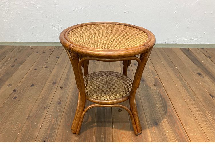 籐の素材感溢れるテーブル。