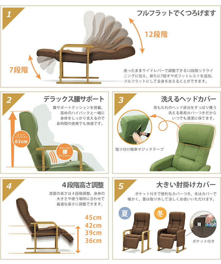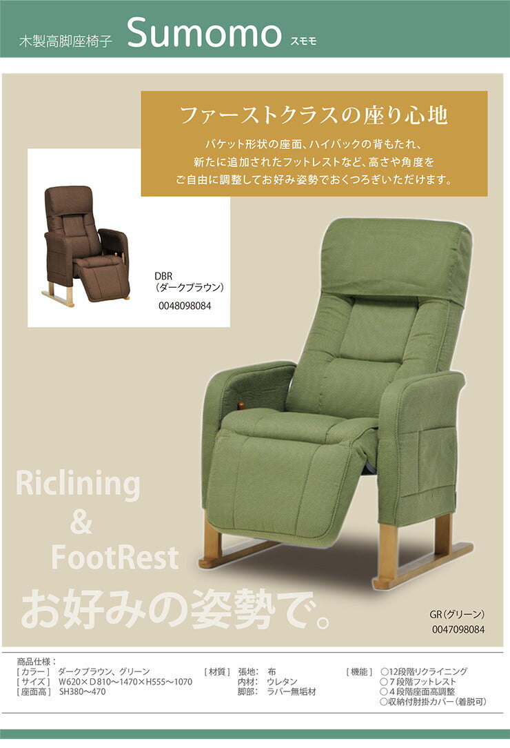 光製作所 高座椅子 スモモ 座椅子 木製 高脚式 高さ調整 高齢者 リクライニング レトロ モダン 肘付き 一人掛け 和風 北欧 おしゃれ ハイバック(代引不可)