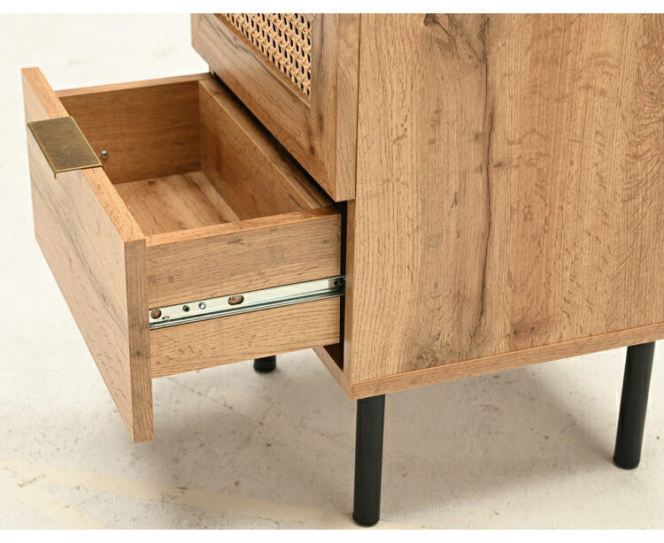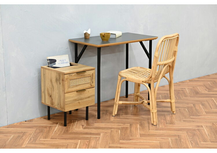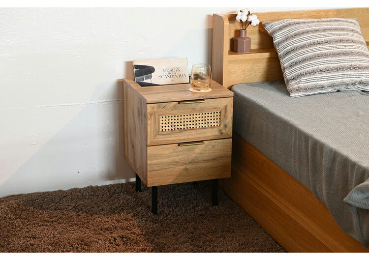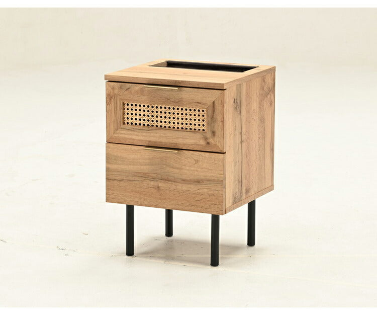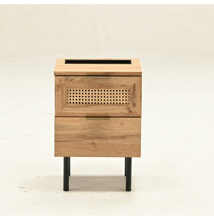 ラタン サイドテーブル 幅35cm 天然ラタン 収納 引き出し ベッドテーブル ほぼ完成品 スチール脚 カゴメ編み おしゃれ 韓国インテリア リビング ダイニング 棚 木製 ラック コンパクト シンプル 北欧(代引不可)