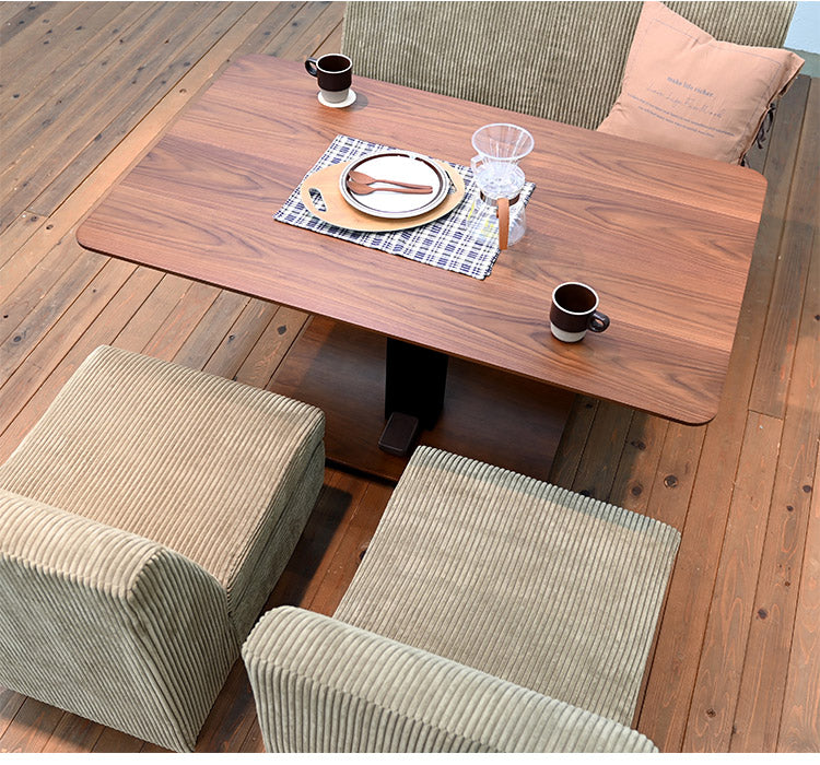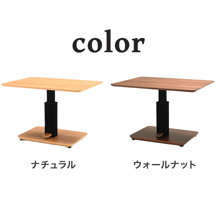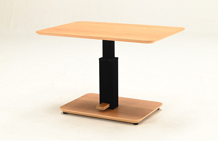 ペダルを踏むだけで、高さ調節が出来、ダイニング使いはもちろん、低くすればリビングテーブル使いとしても活躍します。