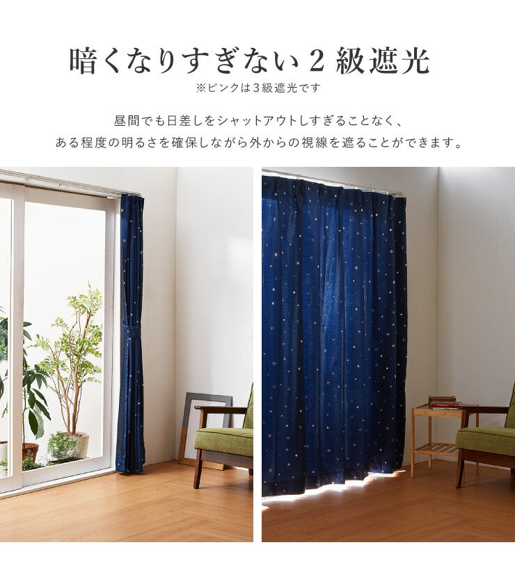 星柄 カーテン 2枚組 幅100cm 2級遮光 3級遮光 スター ドレープ 洗える ウォッシャブル 2枚セット おしゃれ 日よけ(代引不可)