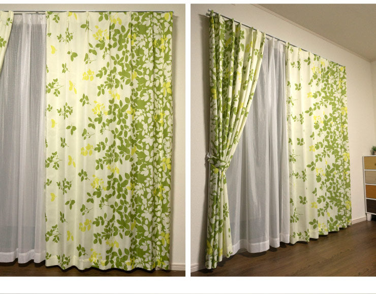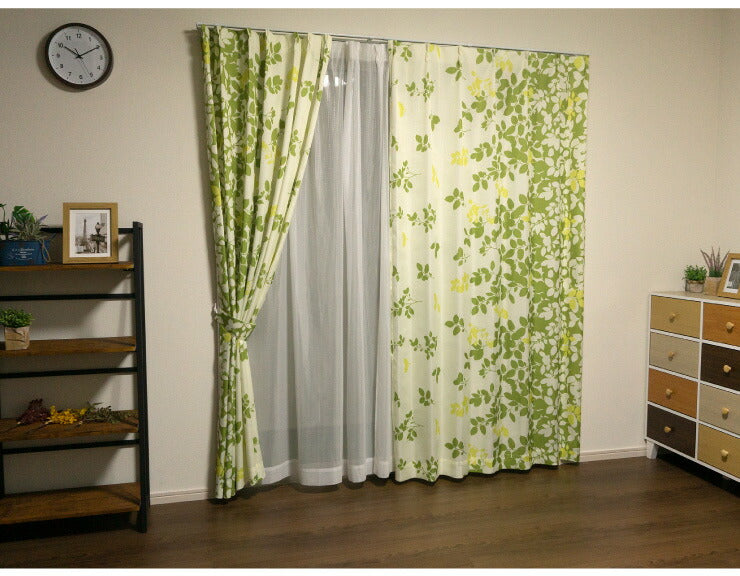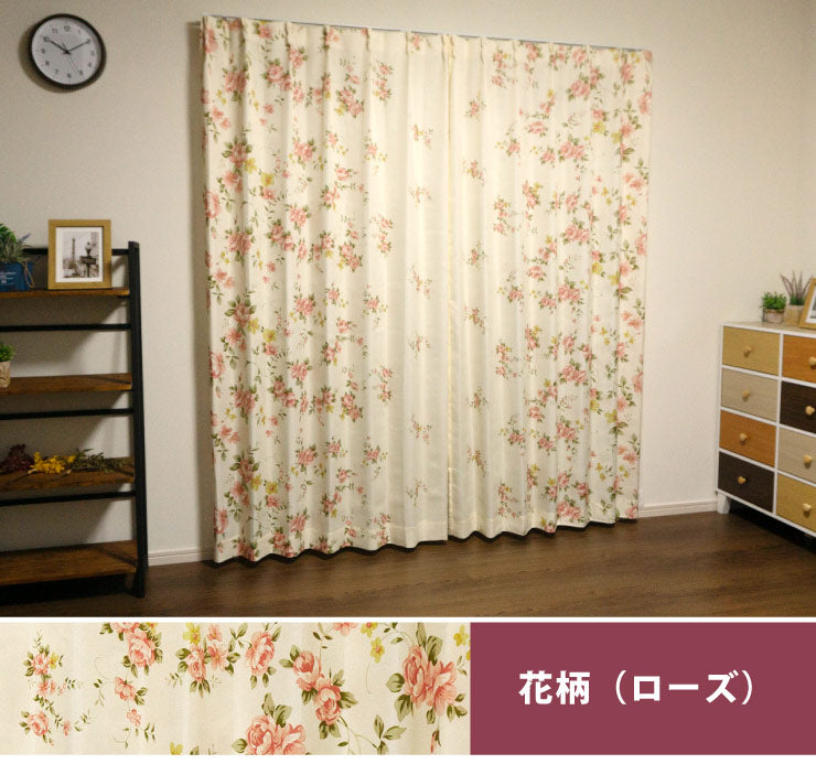 カーテン 【2カラー×4サイズ 4枚セット】 花柄 フラワー アシンメトリー ウォッシャブル 遮熱 カーテン 遮熱カーテン 洗える(代引不可)