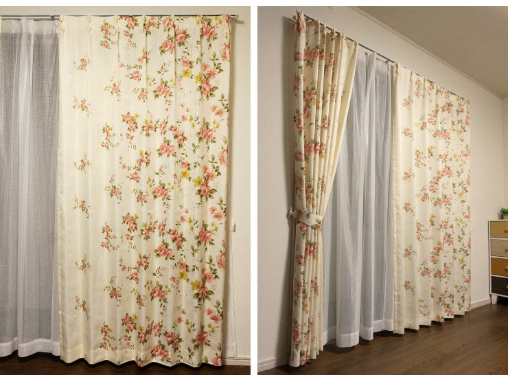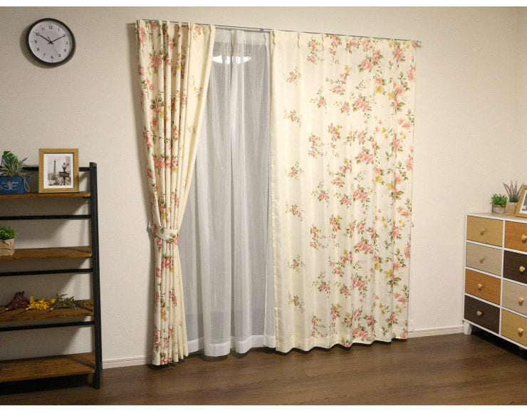 ドレープカーテン2枚組とレースカーテン2枚組の4枚セットです