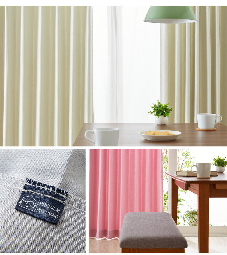 ペットの爪が引っかかりにくいドレープカーテン 厚地カーテン 2枚組 抗菌 防臭 防水 防汚 撥水加工 洗える PLEMIUM PET LIVING