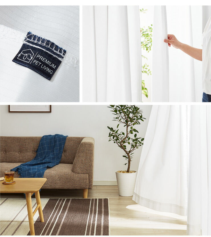 ミラーレースカーテン 2枚組 ペットの爪が引っかかりにくいレースカーテン 幅100cm UVカット 遮像 抗菌 防臭 防水 防汚 撥水 破れにくい 洗える レースカーテン PLEMIUM PET LIVING ペット 新生活 一人暮らし
