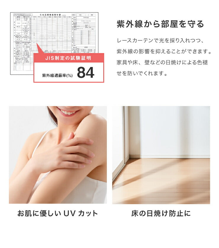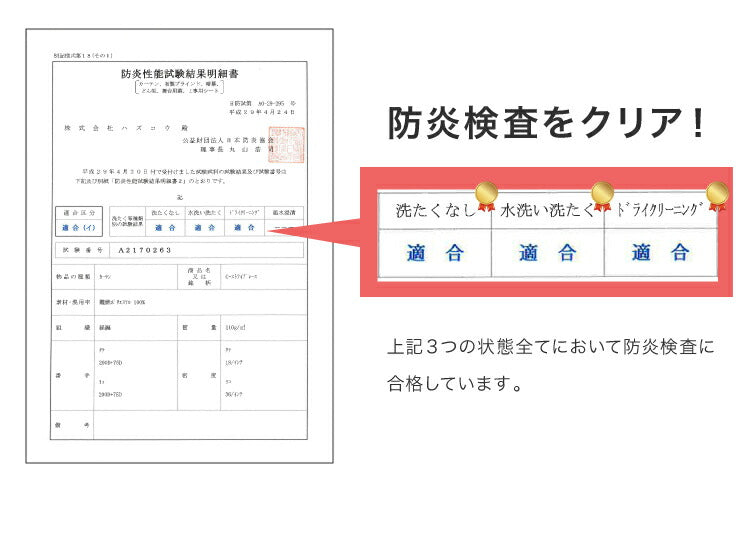 機能:防炎加工(防災ラベル付き)/UVカット率72%/見えにくいレベル昼3、夜3