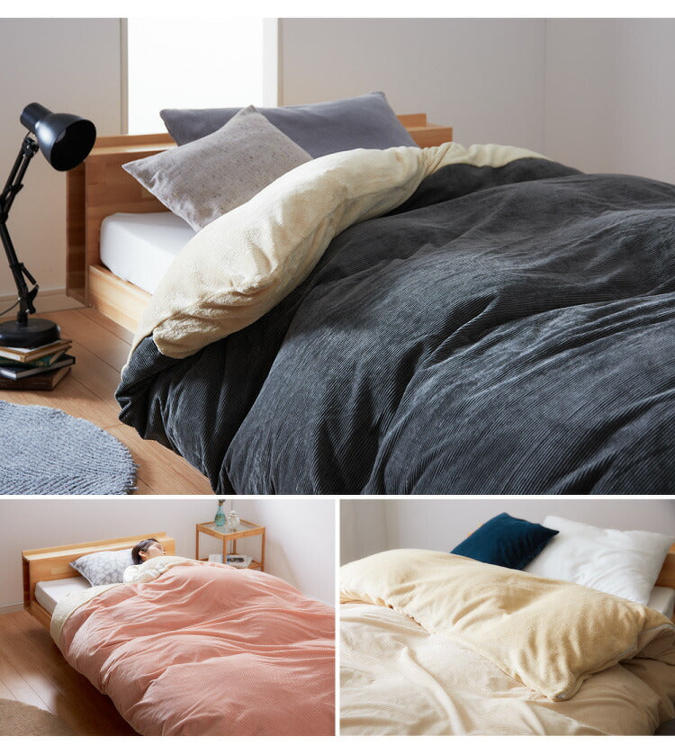 掛け布団カバー シングル おしゃれ コーデュロイ フランネル 撥水加工 北欧 幅150×奥行210 シングルロング 洗える グレー ピンク ベージュ ネイビー