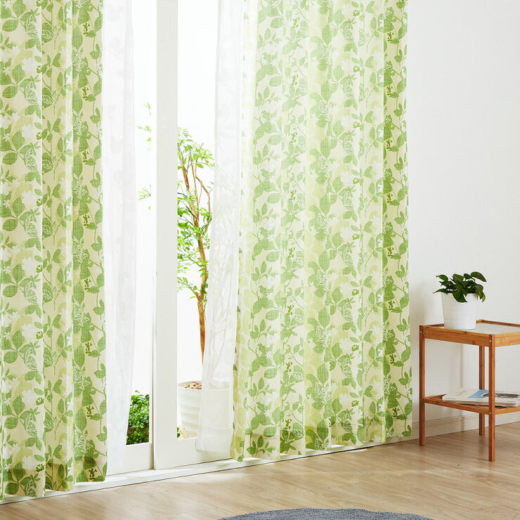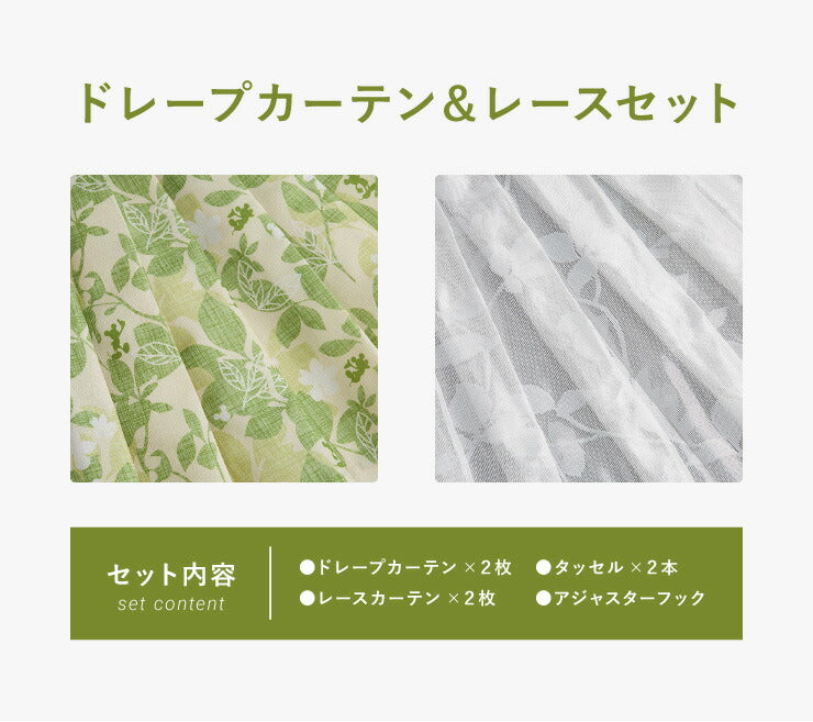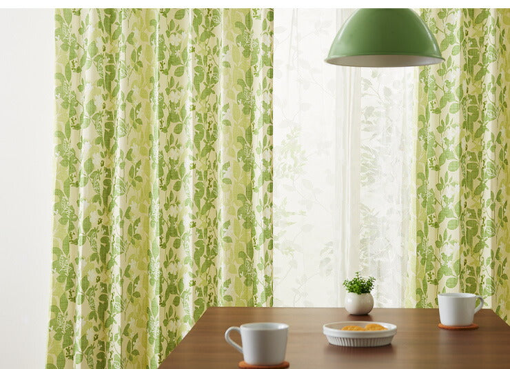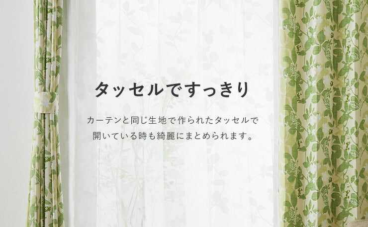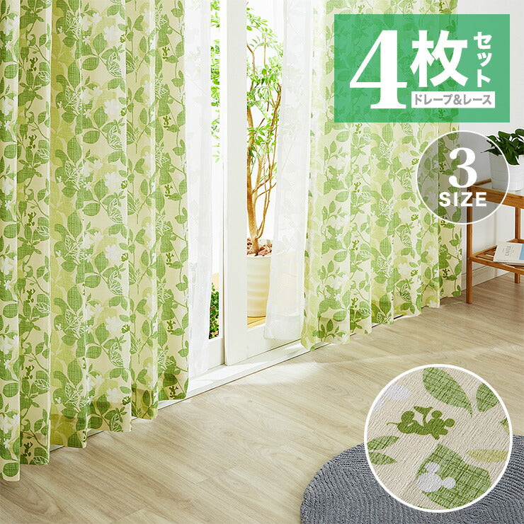 カーテン ディズニー disney 4枚セット ミッキー ミッキーマウス シルエット リーフ ドレープ レースカーテン付き 幅100 洗える(代引不可)