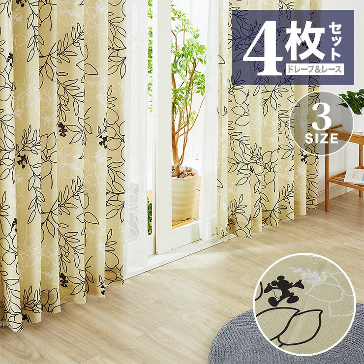カーテン ディズニー disney 4枚セット ミッキー ミッキーマウス ミニー ミニーマウス ラインリーフ ドレープ レース 幅100(代引不可)